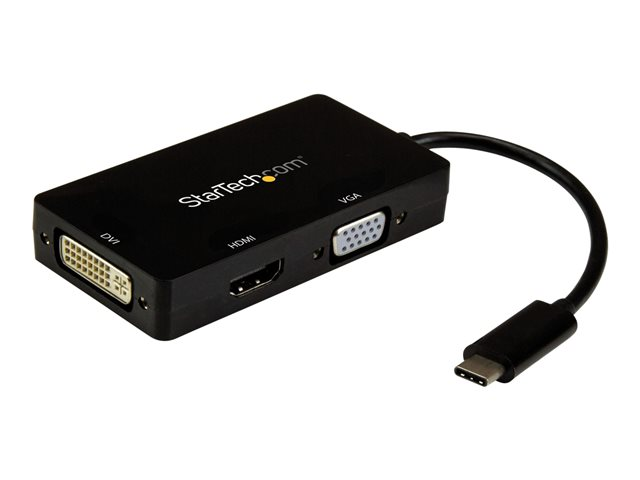 StarTech.com 4K USB C to HDMI, VGA & DVI Multi Port Video Display Adapter for Mac / Windows Laptop & Monitor (CDPVGDVHDBP) - Videoadapter - USB-C han til HD-15 (VGA), DVI-I, HDMI hun - 15 cm - sort - aktiv omformer, 4K30 Hz (3840 x 2160) support (HDMI), 1920 x 1200 (WUXGA) support 60 Hz (DVI og VGA)