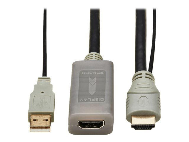 Eaton Tripp Lite Series HDMI Extension Cable with Active Repeater (M/F), 4K 60 Hz, HDR, 4:4:4, HDCP 2.2, 10 ft. (3.1 m), TAA - HDMI-forlængerkabel med Ethernet - TAA-kompatibel - USB, HDMI han til HDMI hun - 3.1 m - grå, sort - 4K60 Hz (3840 x 2160) support, aktiv gentager, 3D video support, guldbelagte kontakter