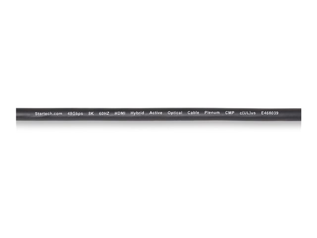 StarTech.com 100ft (30.4m) HDMI 2.1 Hybrid Active Optical Cable (AOC), CMP, Plenum Rated, 8K Ultra High Speed HDMI Fiber Optic Cable, 48Gbps, 8K 60Hz/4K 120Hz, HDR10+/FRL/TMDS/eARC - CMP In Wall HDMI 2.1/2.0 Cord (8K-A-100F-HDMI-CABLE) - Ultra High Speed - HDMI-kabel - HDMI han til HDMI han - 30.4 m - hybrid kobber/fibertoptik - sort - Active Optical Cable (AOC), 4K120 Hz support, 8K60 Hz support, 4K60 Hz support