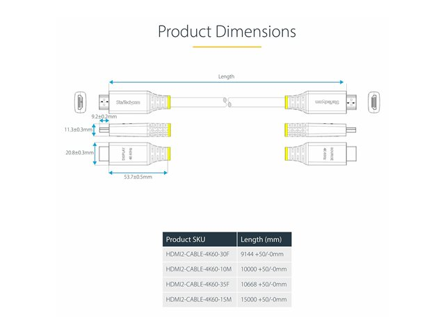 The 10 m Active High Speed HDMI Cable from StarTech.com is designed for performance-oriented connectivity, delivering visuals and audio. This cable supports resolutions up to 4K (2160p) at 60 Hz, ensuring crisp image quality suitable for high-definition displays. With 12-bit Deep Color, 32 audio channels, and support for a 21:9 cinema aspect ratio, it provides an enriched viewing experience. The advanced shielding material, coupled with EMI protection, provides stable signal transmission without interference, making it suitable for demanding environments.