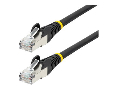 Discover a solution for your networking needs with the StarTech.com 1.5m CAT6a Ethernet Cable. Designed for high-speed data transfer and performance, this black, low smoke zero halogen (LSZH) cable is perfect for environments requiring stringent safety measures. With its snagless design and strain reliefs, it offers durability and longevity, ensuring your connections remain stable and secure. The cable features gold-plated RJ-45 connectors, providing maximum conductivity and minimal signal loss, making it ideal for supporting 10GbE 500MHz 100W PoE++ applications. Its compliance with standards, including IEEE 802.3bt and ANSI/TIA-568.2-D, ensures compatibility and reliability. Whether for home or office use, this network patch cord delivers on performance and safety, making it an essential component of any modern network.