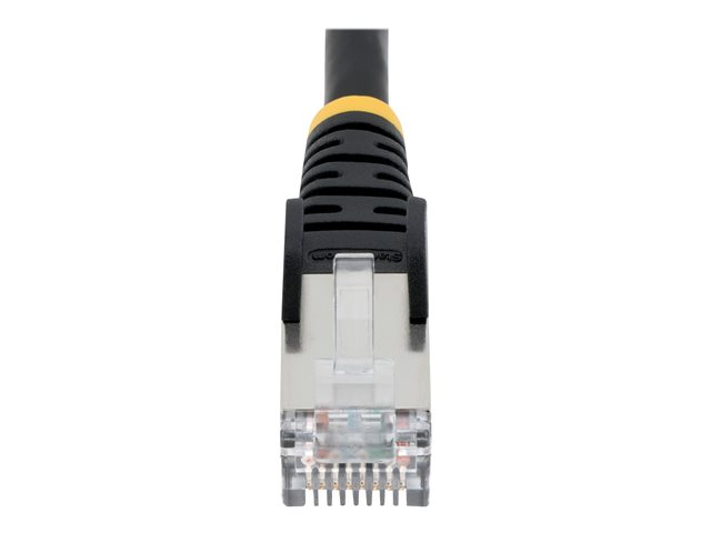 Discover a solution for your networking needs with the StarTech.com 1.5m CAT6a Ethernet Cable. Designed for high-speed data transfer and performance, this black, low smoke zero halogen (LSZH) cable is perfect for environments requiring stringent safety measures. With its snagless design and strain reliefs, it offers durability and longevity, ensuring your connections remain stable and secure. The cable features gold-plated RJ-45 connectors, providing maximum conductivity and minimal signal loss, making it ideal for supporting 10GbE 500MHz 100W PoE++ applications. Its compliance with standards, including IEEE 802.3bt and ANSI/TIA-568.2-D, ensures compatibility and reliability. Whether for home or office use, this network patch cord delivers on performance and safety, making it an essential component of any modern network.