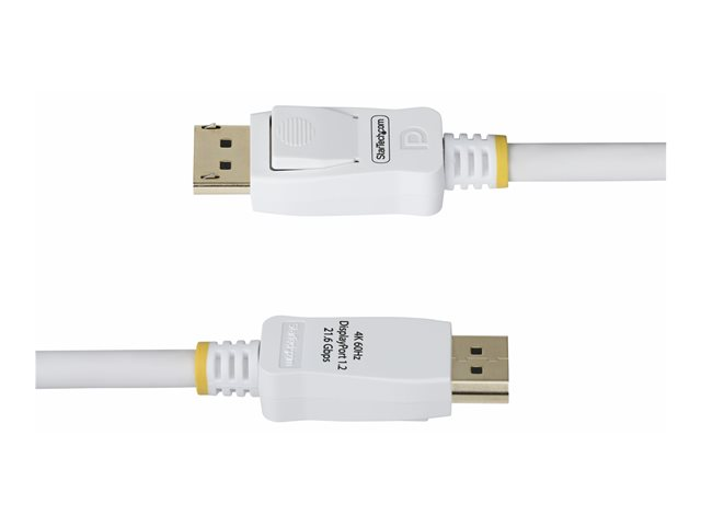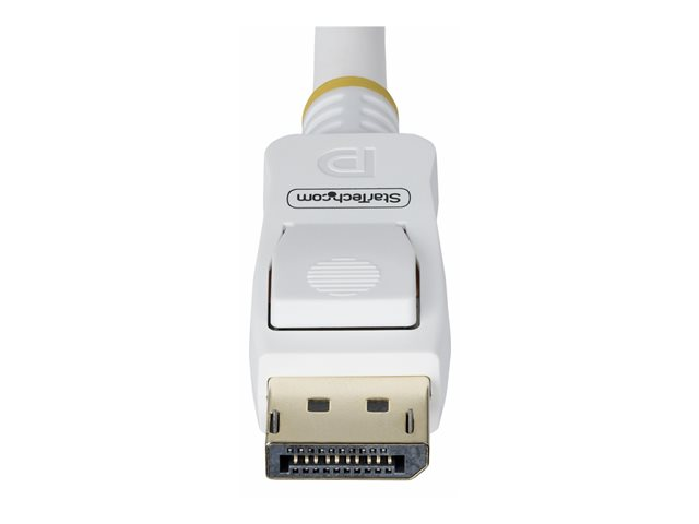 Enhance your viewing and audio experience with the StarTech.com 6ft White VESA Certified DisplayPort 1.2 Cable with Latches. Designed to meet the needs of high-definition displays, this cable supports 1080p at 240Hz, 2K at 144Hz, and 4K at 60Hz, ensuring clear visuals for gaming, streaming, and professional applications. With support for up to 7.1 audio channels and 8 audio channels, it delivers a rich and immersive audio experience. The latched connectors and EMI protection provide a secure and stable connection, minimizing interference for uninterrupted data transmission. Constructed with a durable thermoplastic elastomer jacket and shielded with aluminum mylar foil and braid, it stands up to demanding environments. Additionally, its support for DisplayPort Multi-Stream Transport (MST) allows for the daisy-chaining of multiple monitors, simplifying your workspace setup without compromising on display quality. Whether for work or play, this DisplayPort cable is a reliable choice for superior audiovisual performance.