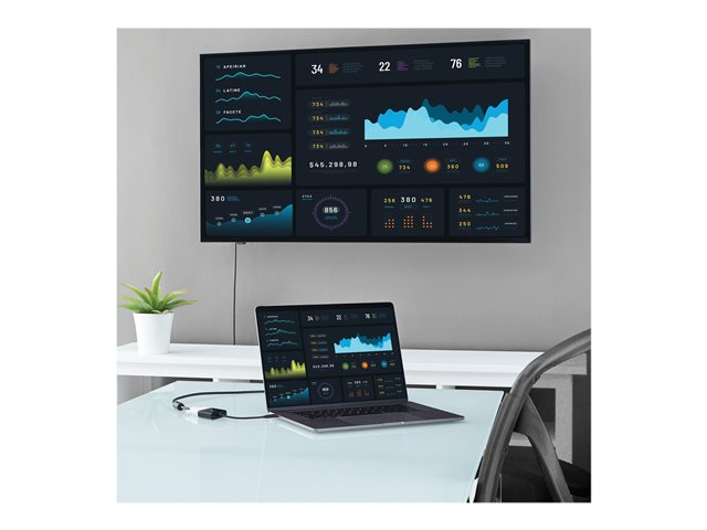 This USB Type-C video adapter is highly portable, with a small footprint and a lightweight design. It's the perfect accessory for your MacBook or Chromebook, fitting easily into your laptop bag or carrying case, which is great for BYOD (Bring Your Own Device) applications at the office.