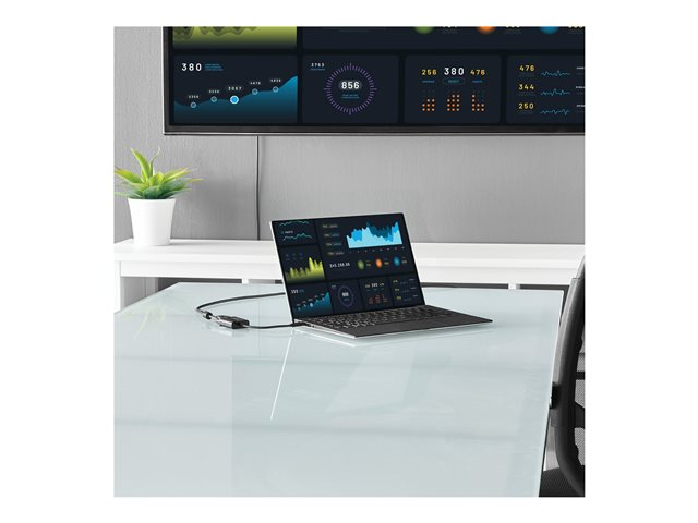 This adapter lets you utilize the versatile USB Type-C port on your portable device. USB Type-C is a reversible connector, so no matter how you plug it in, the adapter will always work, saving you the hassle and embarrassment of struggling with your device when you're trying to present.