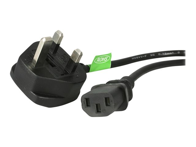 The 3 ft (1 m) UK Computer Power Cable from StarTech.com provides a reliable connection with its robust design and flexible features. It has a power BS 1363 plug on one end and a power IEC 60320 C13 connector on the other, suitable for various electronic devices. This cable supports a rated voltage of AC 250 V and a rated current of 10 A, ensuring safe and efficient power supply.