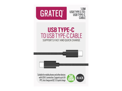 GRATEQ - USB-kabel - 24 pin USB-C (han) til 24 pin USB-C (han) - 5 A - 1 m - USB Power Delivery (100 W) - sort