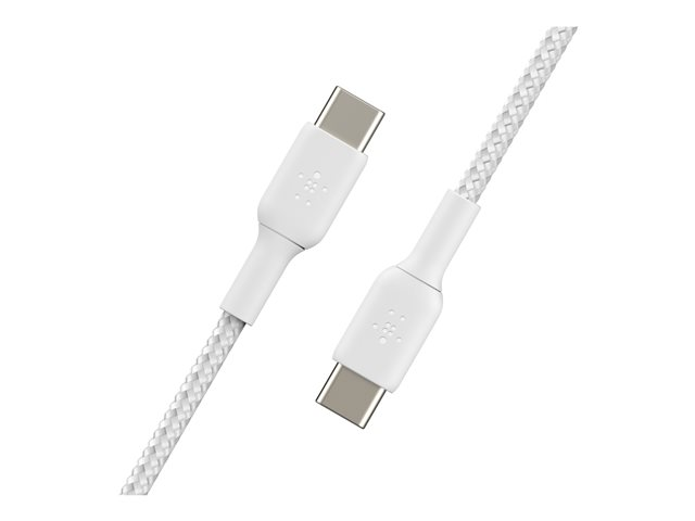 Belkin BoostCharge - USB-kabel - 24 pin USB-C (han) til 24 pin USB-C (han) - USB 2.0 - 3 A - 1 m - USB Power Delivery (60W) - hvid (pakke med 2) CAB004BT1MWH2PK