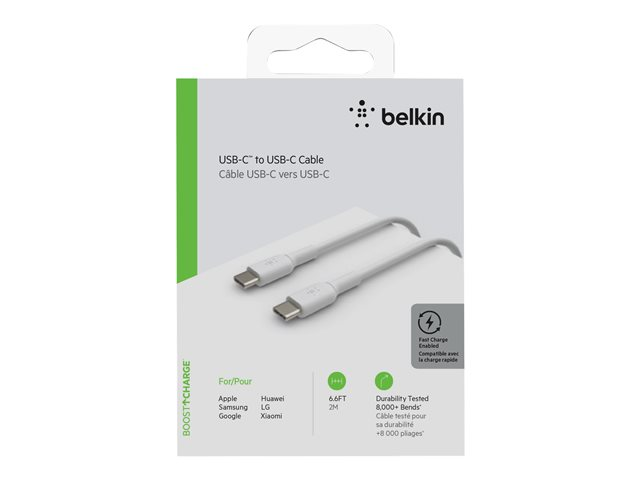 Belkin BoostCharge - USB-kabel - USB-C (han) til USB-C (han) - 2 m - hvid CAB003BT2MWH