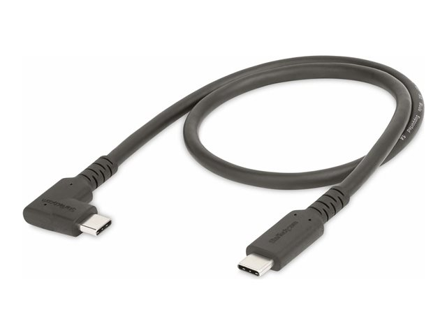 StarTech.com 1.6ft (50cm) Rugged Right Angle USB-C Cable, USB 3.2 Gen 2 (10 Gbps), USB C to C Data Transfer Cable, 4K 60Hz DP Alt Mode, 100W Power Delivery - 90 Degree USB-C Cable (RUSB31CC50CMBR) - USB-kabel - USB-C (han) lige til USB-C (han) højrevinklet - USB 3.2 Gen 2 - 50 cm - 4K60 Hz support, robust - sort