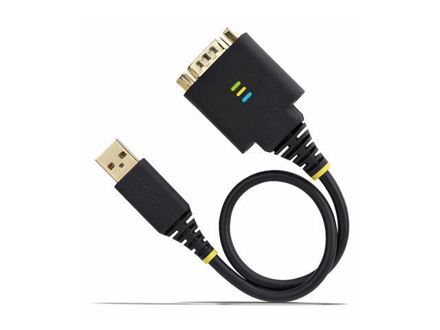 The 1 ft (30 cm) USB to Serial Adapter Cable from StarTech.com provides a reliable connection for various applications requiring serial communication. With high-quality construction featuring copper shielding, this adapter cable ensures EMI/RFI protection and electrostatic discharge (ESD) protection, allowing for stable data transfers without interference. The cable is designed with a molded, rugged build, suitable for both casual and professional use.