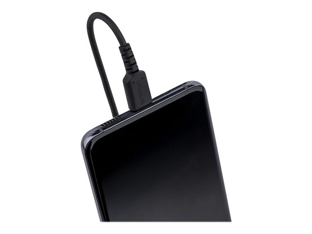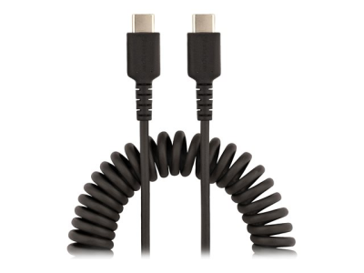 StarTech.com 20in (50cm) USB C Charging Cable, Coiled Heavy Duty Fast Charge & Sync USB-C Cable, High Quality USB 2.0 Type-C Cable, Rugged Aramid Fiber, TPE, 3A, S20, iPad, Pixel - Durable Male to Male USB, Black - USB-kabel - USB-C (han) til USB-C (han) - USB 2.0 - 3 A - 50 cm - snoet - sort