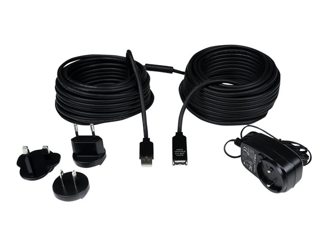 StarTech.com 20m USB 2.0 Active Extension Cable - M/F - USB extension cable - USB (M) to USB (F) - USB 2.0 - 66 ft - active - black - USB2AAEXT20M - USB forlængerkabel - USB (han) til USB (hun) - USB 2.0 - 20 m - aktiv - sort - for P/N: SVA5H2NEUA, UUSBOTG