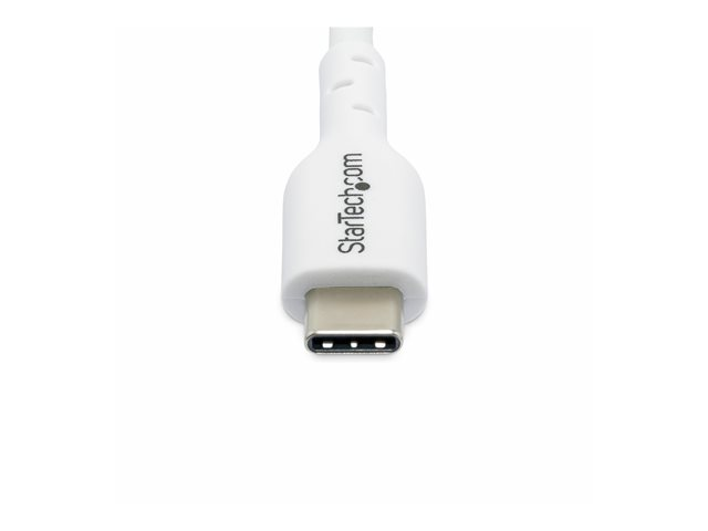 The 2 m (6.6 ft) White USB-C Charging Cable from StarTech.com offers a reliable solution for charging and data transfer needs. Designed for compatibility with USB-C devices, this cable features a durable Thermoplastic elastomer (TPE) jacket and strain relief to withstand daily use while maintaining performance. The aluminum mylar foil with braid shielding provides EMI protection, ensuring stable connections during charging and data syncing.