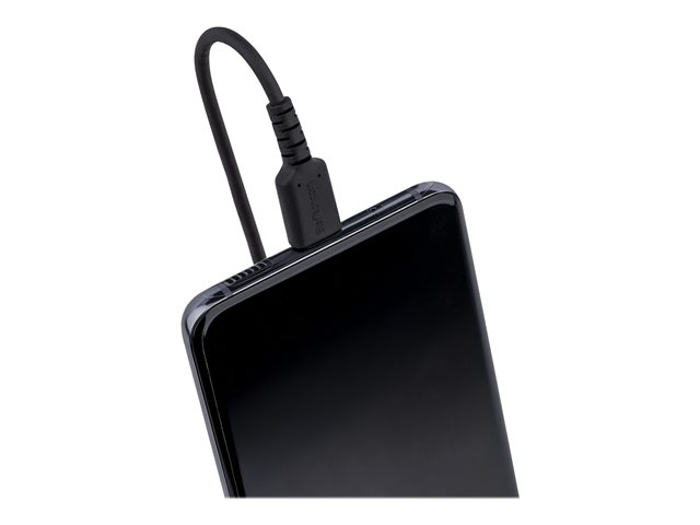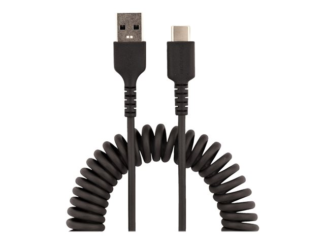StarTech.com 3ft (1m) USB A to C Charging Cable, Coiled Heavy Duty Fast Charge & Sync USB-C Cable, High Quality USB 2.0 A to Type-C, Rugged Aramid Fiber, TPE, 3A, S20, iPad, Pixel - Durable Male to Male USB, Black - USB-kabel - USB (han) til USB-C (han) - USB 2.0 - 3 A - 1 m - snoet - sort