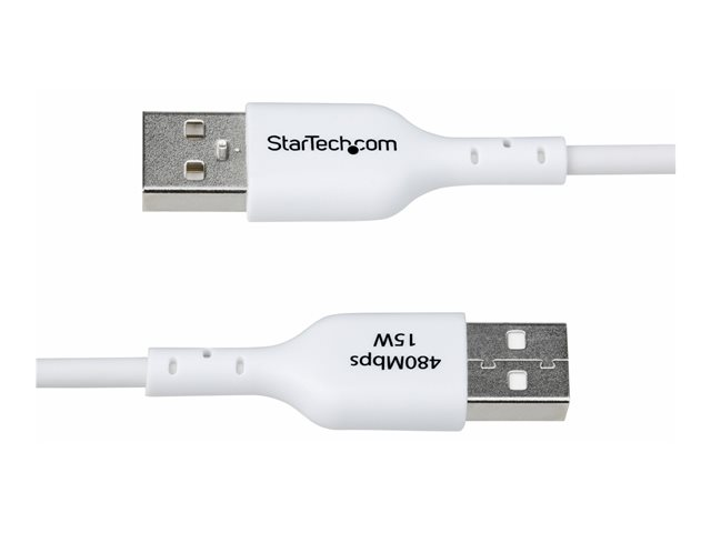The 3 ft (1 m) White USB-A to USB-C Charging Cable from StarTech.com offers a reliable solution for both charging and data transfer. Designed to provide a quick and effective connection, this cable supports USB Fast Charge with a capacity of 15 W, ensuring devices can be powered up efficiently. Its 480 Mbps data rate enables seamless syncing of files between devices, making it ideal for everyday use. Built with durability in mind, this USB-C cable features aluminum mylar foil shielding to protect against EMI interference. The cable includes strain relief and a nickel-plated connector, allowing for up to 10,000 insertions, ensuring longevity in various applications. The halogen-free jacket made of thermoplastic elastomer (TPE) adds to its safe usage profile, complying with RoHS standards for environmental considerations.