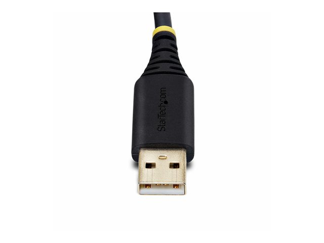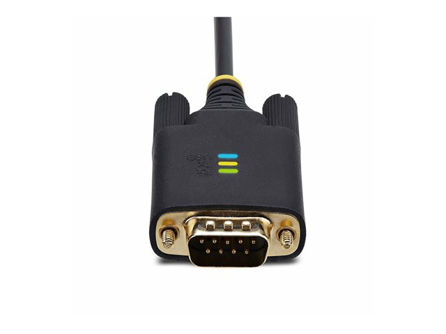 The StarTech.com 6.6 ft (2 m) USB to Serial Adapter Cable is a high-quality solution for connecting serial devices to a USB port. With its COM retention feature, it maintains device names and settings even after disconnecting, making it perfect for setups that require consistent device naming. The cable is equipped with the FTDI FT232R chipset, ensuring reliable data transmission and device communication. Its rugged design, combined with EMI/RFI and electrostatic discharge (ESD) protection, makes it durable and safe for use in various environments. The gold-plated connectors not only enhance the connection quality but also resist corrosion, extending the life of the cable. Additionally, the LED status indicator provides a quick visual cue to monitor the connection status, simplifying troubleshooting. Whether for industrial applications, office use, or any setup requiring serial communication, this adapter cable offers a dependable and efficient solution.