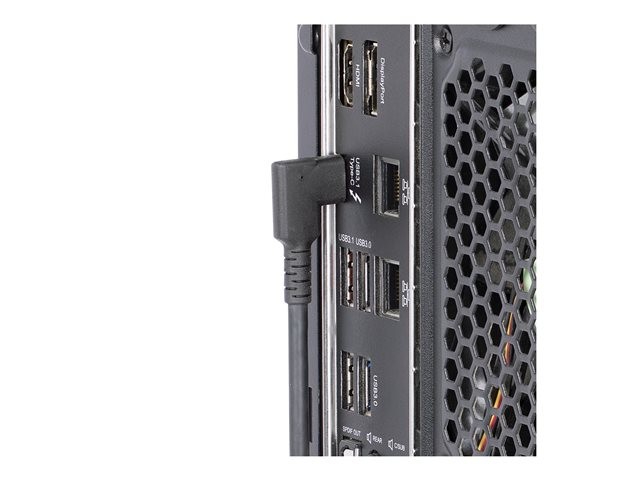 Connect USB 5 Gbps source and peripheral devices, using this 6.6 feet (2 m) Rugged Right Angle USB Type-C Cable. Position the right-angle USB-C connection along the device to reduce cable clutter and avoid prolonged strain from bending. It is ideal for 5 Gbps data transfer to external USB-C-enabled external storage devices, or as a single-cable connection from a USB-C dock to a laptop.
