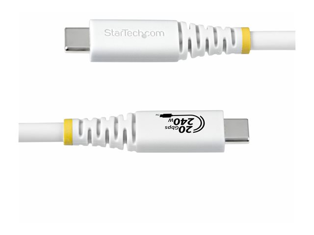 StarTech.com - USB-kabel - 24 pin USB-C (han) til 24 pin USB-C (han) - USB4 / Thunderbolt 3 / Thunderbolt 4 / DisplayPort 1.4 - 2 m - 4K120 Hz support, robust, forlænget strømrækkevidde (EPR), Power Delivery 3.1 support, fleksibel - hvid