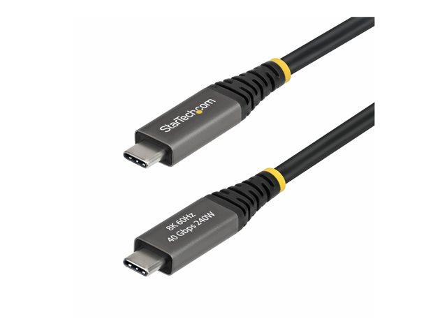 The StarTech.com CC2M40GUSB4GEN3 is a USB-C cable designed to meet the demands of modern connectivity. With a maximum data transfer rate of 40 Gbps, this active cable supports high-resolution displays and advanced audio channels, allowing for clear visuals and immersive sound. Its construction, featuring copper foil and aluminum braid shielding, ensures reliable performance while minimizing electromagnetic interference, making it a choice for various applications including gaming, video editing, and high-res streaming.