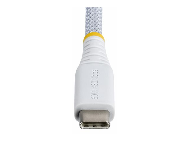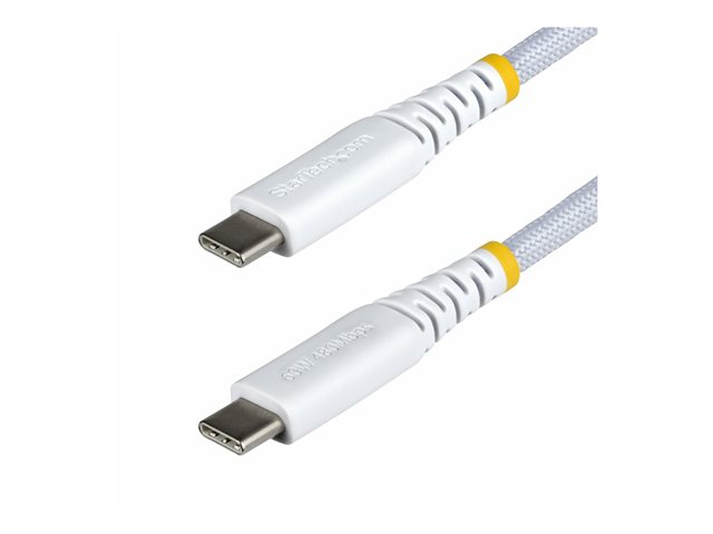 The USB-C cable from StarTech.com provides a reliable connection for all USB-C devices, meeting USB 2.0 standards. The dual male connectors are designed to ensure compatibility with a wide range of devices, while the durable features such as double braided construction and tangle-free design enhance usability and longevity. With a data transfer rate of 480 Mbps and a rated current of 3 A, this cable is optimized for efficient charging and data transfer. Additional features include strain relief and labeled connectors for user-friendly operation.