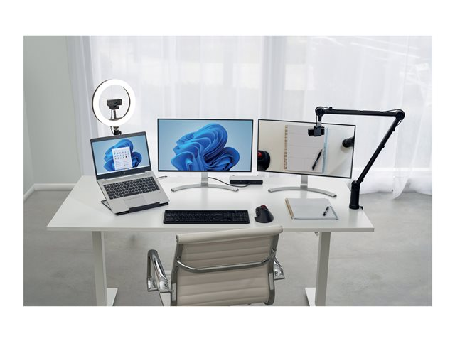 Kensington's W1050 1080p fixed focus wide angle webcam is a professional and cost-effective webcam delivering high-quality video (1080p @ 30 fps), omnidirectional microphones and unique features for privacy, camera placement and improved low light imaging. The W1050 is optimized to help you look and sound your best on the popular video conferencing applications.