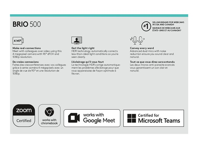 Full HD 1080p-webkamera med lyskorrektion, automatisk framing, og Show Mode. Kom med dit bedste jeg til hvert eneste møde. Brio 500 sikrer, at du altid ser naturlig ud og lyder naturligt på møder, så du kan skabe mere ægte kontakt med andre.