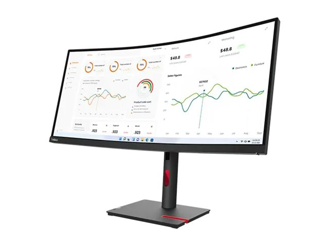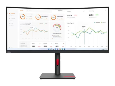 GThinkVision T34w-30 Monitor is 3-side NearEdgeless, immersive 34-inch WQHD curved display. 3440 x 1440 resolution lets you take in all the finer details. A 21:9 aspect ratio delivers a panoramic experience, while a 1500R curvature delivers a consistent focal length across the screen. It is a treat for the eyes with rich, vivid colors brought to life by a 99% sRGB color gamut. Cares for your vision too with Natural Low Blue Light technology that reduces harmful blue light emissions without color distortions. It is designed for efficiency with a host of connectivity options including a USB Type-C, HDMI and DP ports, modular VoIP support for a video conferencing or audio with AI-enhanced MC60 and MS30 ports, and efficient network management with MAPT, PXE, and WOL (S3-S5). The enhanced lift range gives it more flexibility to meet the working posture you find most comfortable. It accommodates an open-slot phone holder that also supports tablets of different sizes to put all your screens within view, while cleaner cable management adds to a clutter-free desk. If you're looking for a cleaner desk, you can VESA mount this monitor too. You'll be pleased to know that the T34w-30 meets the ecological and health standards of TCO 9.0 regulations and comes packed in recyclable paper cushioning that's safe for the environment too.