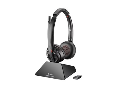 Poly Savi 8220 - Savi 8200 series - headset - på øret - DECT / Bluetooth - trådløs - USB-A via Bluetooth adapter - sort - UC-certificeret, Certified for Microsoft Teams