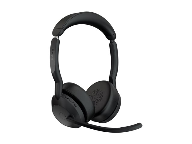 Jabra Evolve2 55 UC Stereo - Headset - på øret - Bluetooth - trådløs - aktiv støjfjerning - USB-C - sort - med opladningsstander - Zoom Certified, Cisco Webex Certified, Optimized for Microsoft Teams, Alcatel-Lucent Certified, Avaya Certified, Unify Certified, MFi Certified, Amazon Chime Certified 25599-989-889