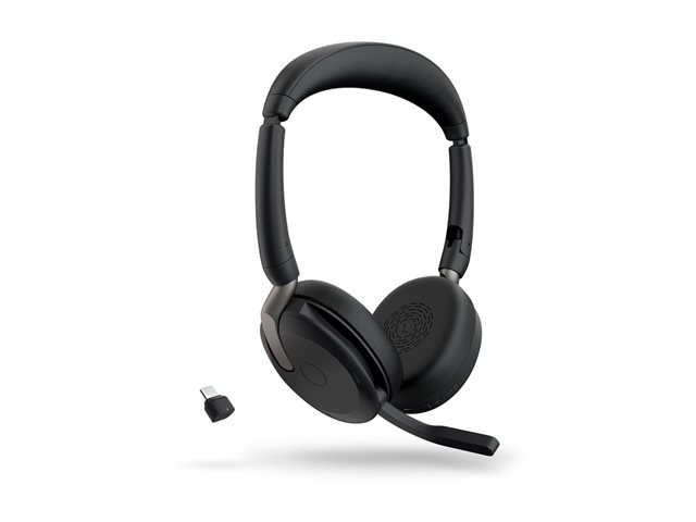 Jabra Evolve2 65 Flex UC Stereo - Headset - på øret - Bluetooth - trådløs - aktiv støjfjerning - USB-C - sort - Optimeret til UC