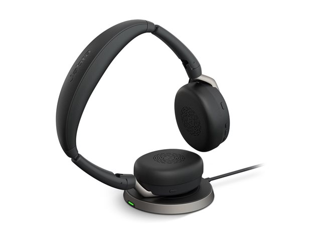 Jabra Evolve2 65 Flex UC Stereo - Headset - på øret - Bluetooth - trådløs - aktiv støjfjerning - USB-A - sort - med trådløs opladningsblok - Optimeret til UC 26699-989-989