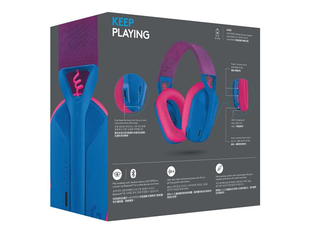 Logitech Lightspeed G435 - Headset - fuld størrelse - Bluetooth/2,4 GHz radiofrekvens - trådløs - blå - Discord Certified