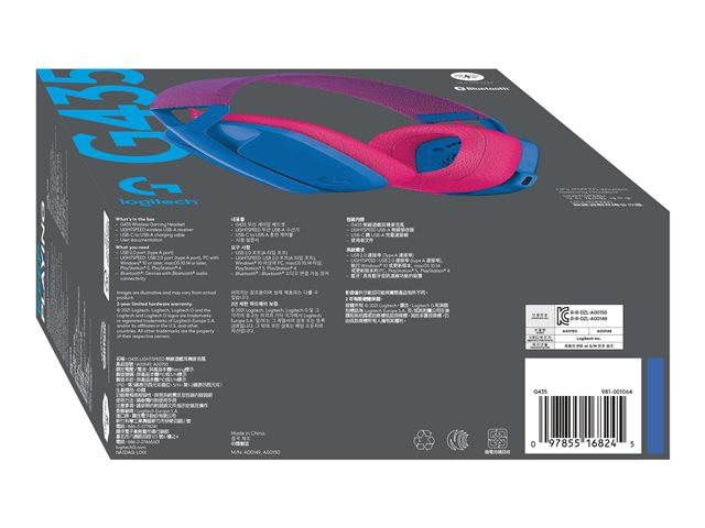 Logitech G435 LIGHTSPEED trådløst gaming headset En trådløs LIGHTSPEED og Bluetooth-forbindelse med hurtig reaktionstid lader dig spille og snakke på PC, Mac, PS5/PS4, smartphones og andre lydaktiverede Bluetooth-enheder. Lyd i gaming-kvalitet med nøje balanceret hi-fi lyd, 40 mm lyddrivere og kompatibilitet med Dolby Atmos og Windows Sonic giver den ultimative surround sound til alle dine gaming-eventyr. Med Dual Beamforming-mikrofoner som reducerer baggrundsstøj uden en mikrofonarm. Desuden er G435 tilgængelig i flere farver så du kan matche din favoritstil til dit gaming-setup.
