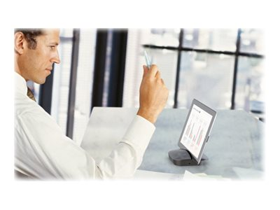 Opnå en lydkvalitet der er så god at man ikke kan høre at det er en højtalertelefon - endda uden at skulle holde telefonen op til øret. Med den indbyggede holder kan du anbringe mobiltelefonen eller tablet-pc'en i den rigtige vinkel og få videoopkald uden rystelser samt håndfri adgang til mobilskærmen.