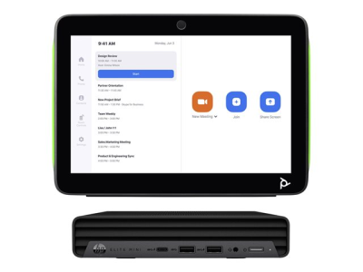 - Inkluderer HP Mini Conferencing PC og Poly TC10 touch controller til en komplet opsætning
