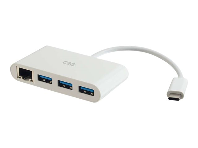 C2G USB C Ethernet and 3 Port USB Hub White - Hub - 3 Ports - Netværksadapter - USB-C - Gigabit Ethernet x 1 + USB 3.0 x 3 - hvid