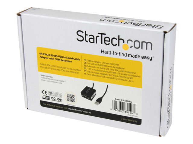 Tilføj en RS422/485 seriel port til dit system via USB; har COM-port fastholdelse. Med ICUSB422 6ft Professional RS422/485 USB Serial Cable Adapter med COM Port Retention kan du tilslutte RS422- eller RS485-serielle enheder til din USB-aktiverede computer. Adapteren har et 9-polet (DB9) serielt han-stik samt dipswitch-kontroller til nem portkonfiguration og kræver minimal software.