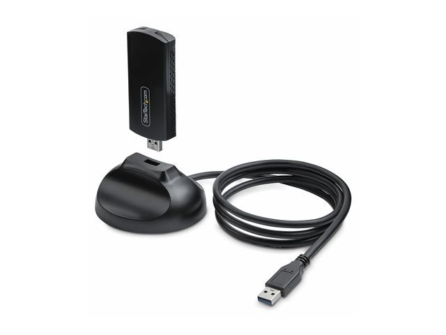 StarTech.com Wi-Fi 6E USB Adapter/Dongle, For Desktop/Laptop PC, Wireless NIC w/Foldable Antenna, WiFi Adapter Supports 802.11 b/g/n/ac/ax, 2.4/5/6 GHz Network Compatible - Netværksadapter - USB 3.0 - Wi-Fi 6E - sort