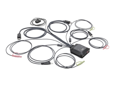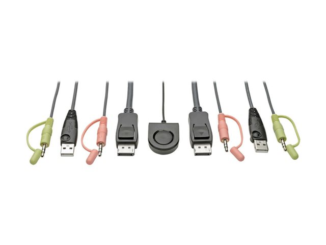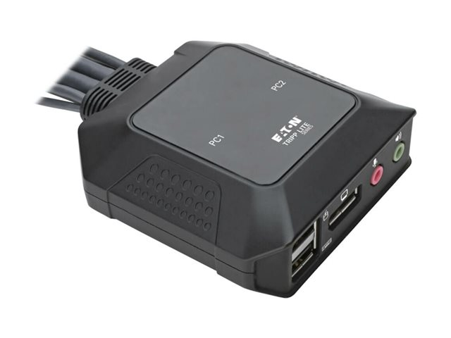 2-Port DisplayPort 1.1/USB KVM Switch med Audio/Video fra Eaton Tripp Lite-serien er en omfattende løsning, der er designet til at forbedre din multimedie- og arbejdsoplevelse. Med understøttelse af video i høj opløsning op til 4096 x 2160 og en V-Sync-hastighed på 30 Hz leverer den enestående billedkvalitet til professionelle applikationer og underholdning. Switchen gør det nemt at skifte mellem to computere, hvilket gør den ideel til miljøer, hvor optimering af arbejdsområdet er afgørende.
