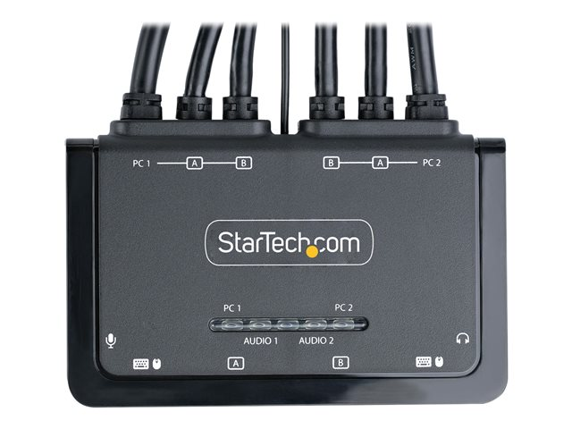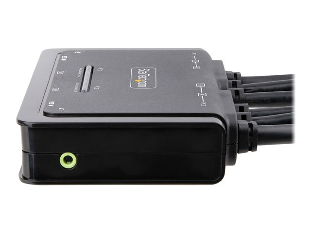StarTech.com 2-Port Dual-Monitor HDMI Cable KVM Switch, 4K 60Hz, Compact KVM with 5ft/1.5m USB-A/HDMI/Audio Integrated Cables, Bus Powered - Remote Push Button/Hotkey Switching (C2-DH46-UA2-CBL-KVM) - KVM / audio / USB switch - kompakt - 2 x KVM / audio / USB - 1 lokalbruger - desktop