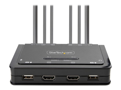 StarTech.com 2-Port Dual-Monitor HDMI Cable KVM Switch, 4K 60Hz, Compact KVM with 5ft/1.5m USB-A/HDMI/Audio Integrated Cables, Bus Powered - Remote Push Button/Hotkey Switching (C2-DH46-UA2-CBL-KVM) - KVM / audio / USB switch - kompakt - 2 x KVM / audio / USB - 1 lokalbruger - desktop C2-DH46-UA2-CBL-KVM