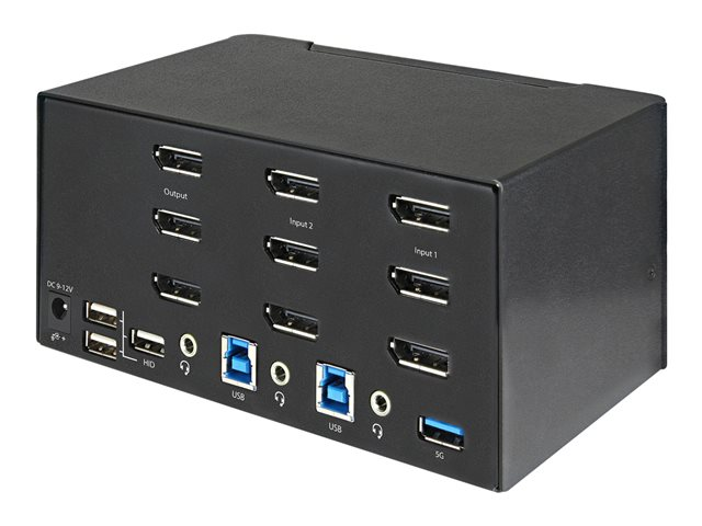 StarTech.com 2 Port Triple Monitor DisplayPort KVM Switch, 4K 60Hz UHD HDR, Desktop 4K DP 1.2 KVM with 2 Port USB 3.0 Hub (5Gbps) & 4x USB 2.0 HID Ports, Audio, Hotkey Switching, TAA - Keyboard/Video/Mouse Switch - KVM / audio-switch - 2 x KVM / audio - desktop - TAA-kompatibel