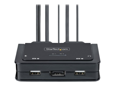 StarTech.com 2-Port USB-C Cable KVM Switch, 4K 60Hz DisplayPort Output, Compact KVM with 4ft/1.2m USB Type-C/Audio Integrated Cables, Bus Powered - Remote Push-Button/Hotkey Switching (C2-D46-UC2-CBL-KVM) - KVM / audio-switch - kompakt - 2 x KVM / audio - 1 lokalbruger - desktop