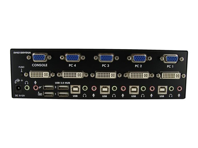 StarTech.com 4 Port DVI VGA Dual Monitor KVM Switch USB with Audio and USB 2.0 Hub (SV431DDVDUA) - KVM / audio / USB switch - 4 x KVM / audio / USB - 1 lokalbruger - desktop - for P/N: IM12D1500P, SVA12M2NEUA, SVA12M5NA, USBDVI4N1A6, USBVGA4N1A10, USBVGA4N1A6 SV431DDVDUA