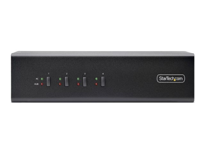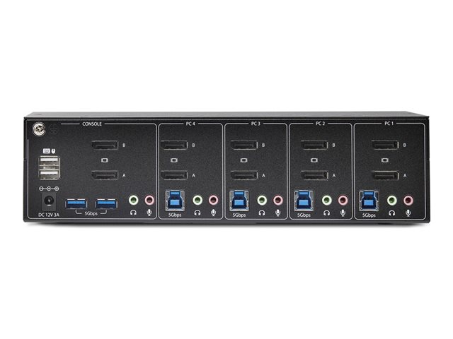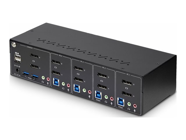 The 4-Port Dual-Monitor DisplayPort KVM Switch by StarTech.com offers seamless control of multiple systems with its capability to switch between four connected machines. Designed for high-definition performance, it supports a maximum video resolution of 3684 x 2160 at 60 Hz, ensuring that the clarity and details of your displays are preserved. The switch incorporates USB 5Gbps hub ports for rapid peripheral connectivity, while the USB 2.0 HID ports provide essential support for your keyboard and mouse, making it an efficient choice for multitasking environments.