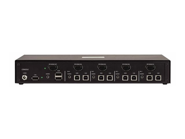 The StarTech.com CK4-HP104C is a versatile KVM, audio, and USB switch that provides efficient management of multiple displays and devices. It supports quad display configurations and can handle up to 4 K at a 60 Hz refresh rate, ensuring a smooth viewing experience. With input options for HDMI and DisplayPort, alongside USB interfaces, users can switch between devices, enhancing productivity in any environment. The compact desktop form factor is backed by features such as anti-tampering protection, metal housing, and support for Common Access Cards (CAC), ideal for secure settings.