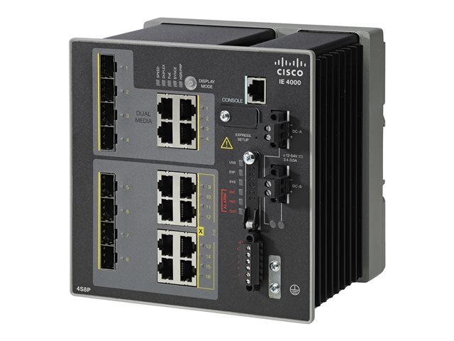 Cisco Industrial Ethernet 4000 Series - Switch - Administreret - 8 x kombo Gigabit SFP + 4 x 10/100/1000 (PoE+) - DIN monterbar på skinne - PoE+ - DC power - TAA-kompatibel