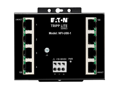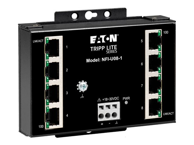 Eaton Tripp Lite series Industrial Ethernet Switch 8-Port Unmanaged - 10/100 Mbps, Ruggedized, DIN/Wall Mount - Switch - ikke administreret - 8 x 10/100 - DIN monterbar på skinne, væg-monterbar - DC strøm - TAA-kompatibel NFI-U08-1