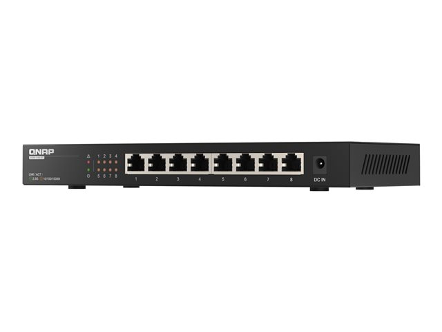 Unleash the potential of your 2.5GbE NAS and computers with a Multi-Gigabit 2.5GbE switch! With eight 2.5GbE ports, the QNAP QSW-1108-8T switch instantly upgrades your network to take advantage of 2.5GbE-enabled devices and NAS without requiring any new network cables. Featuring a near-silent fanless design and plug-and-play set up, the QSW-1108-8T provides network loop detection and blocking functions, making it easy for you to create an affordable high-speed network environment for your home or business.